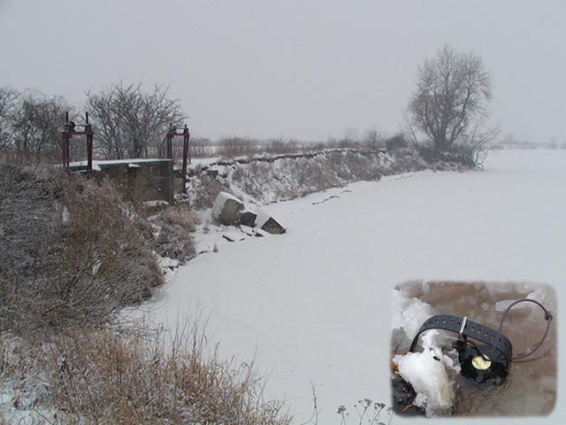 Led je na mnoha místech u kraje velice nestabilní což potvrzuje i mé snadné měření teploty vody. ( Druhý den je teplota nad nulou ). Na několika místech se opět uvezl břeh a to především na výběžku v sektoru "B 6", kde praskl také panel a vůbec to tam začíná být kolem nějak nebezpečné...