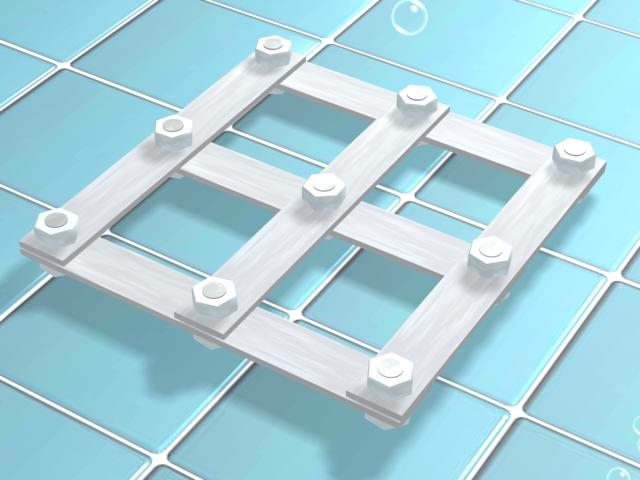 Vyrobeno z hliníkového plocháče o rozměrech například 30 x 3 x 250 mm. Matice a šrouby M 12 z nekorodujícího materiálu. Rozteč je 100 mm a otvory musí být dostatečně volné ke snadnému provlečení šroubů. Vše musí být vyvrtáno přesně, aby pásoviny byly navzájem mezi sebou zaměnitelné. Bohužel si nevzpomínám, jestli se v klubu používá pásovin šest nebo jen pět . Cvičení se provádí na nádech. Kontrola z hladiny je bezvýhradně nutná ! S časem se potápěč nestresuje. Čas se měří na hladině... Není na škodu mít při ruce i lahev s atomatikou ( pouze pro případ ).