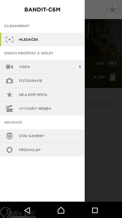 Aplikace Bandit je poměrně jednoduchá bez nějakých „větších“ možností. Na kamerce šipkou nahoru zvolíte připojení wifi. Kamerka vytvoří wifi síť s heslem. Spustíte aplikaci. Zmáčknete jednou symbol kamerky (na pozadí jede video). Pak zmáčknete symbol wifi pod nápisem „Připojit poklepáním“. Dole se ukáže jméno vaší kamerky (heslo zadáváte pouze jednou). Dáte připojit a pokud máte mobil na výšku, v horní části displeje uvidíte náhled toho, co kamera vidí. V aplikaci doporučuji nastavit aktualizace i při použití jak wifi tak mobilních dat. To proto, abyste nemuseli aktualizovat kamerku pouze při připojení k PC (viz třídenní soubor pozice satelitů GPSFix). Dat je to relativně málo a pokud máte solidní datový tarif, vůbec to nemusíte řešit.