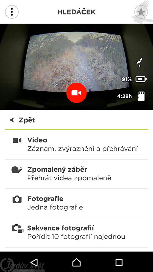 Bez povšimnutí nemohu nechat ani ovládání kamery, které je komplet v češtině. Takže vedle méně známých jazyků románských a germánských kultur si i jazyk český našel své místo. Co se týče aplikace pro mobilní telefony s Androidem, tam je také náš slovanský jazyk plně k dispozici. U IOS X nemohu soudit, ale předpokládám, že to bude stejné, neboť jablíčko má o jednu vymoženost v apce navíc, což trochu droida znevýhodňuje, ale o tom později.