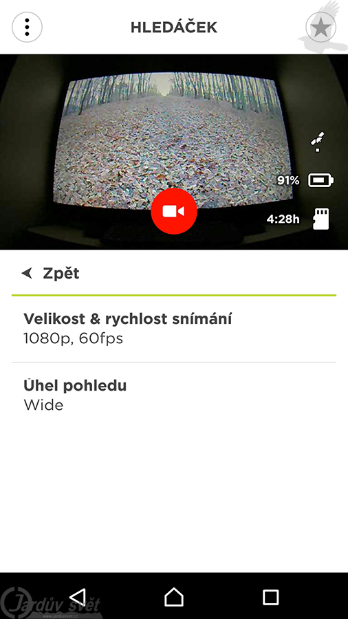 Bez povšimnutí nemohu nechat ani ovládání kamery, které je komplet v češtině. Takže vedle méně známých jazyků románských a germánských kultur si i jazyk český našel své místo. Co se týče aplikace pro mobilní telefony s Androidem, tam je také náš slovanský jazyk plně k dispozici. U IOS X nemohu soudit, ale předpokládám, že to bude stejné, neboť jablíčko má o jednu vymoženost v apce navíc, což trochu droida znevýhodňuje, ale o tom později.